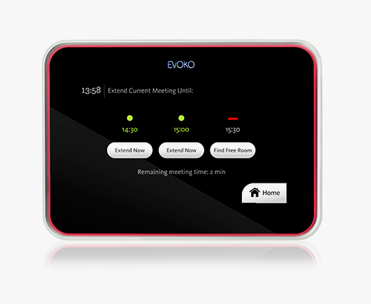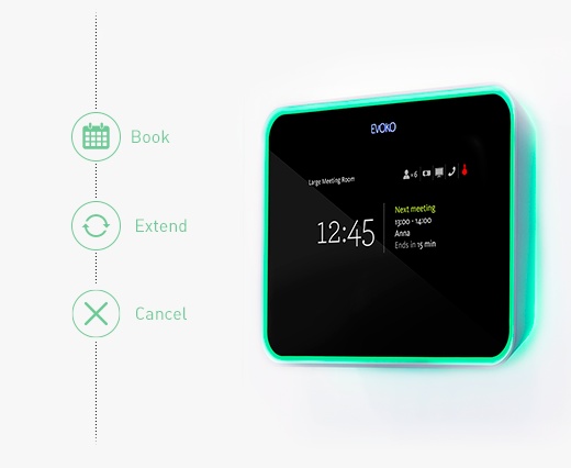 It doesn’t matter where you are. Book, cancel or extend a meeting in your own electroniccalendar or directly on the screen outside the meeting room. If the room is busy, Evoko Room Manager will tell you where the nearest room is available. The units synchronize with MS Exchange, Office 365 or Google Apps for Business to always show the latest information.